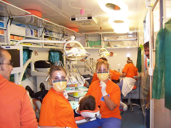 Dal 2006 ad oggi, in collaborazione con Iveco e grazie all’intervento di numerosi sponsor, ogni anno dall’Italia parte un team di operatori sanitari che – alla guida di un camion attrezzato a laboratorio dentistico – raggiunge i bambini emarginati e abbandonati della Romania per curarli e ridare loro un po’ di speranza.
